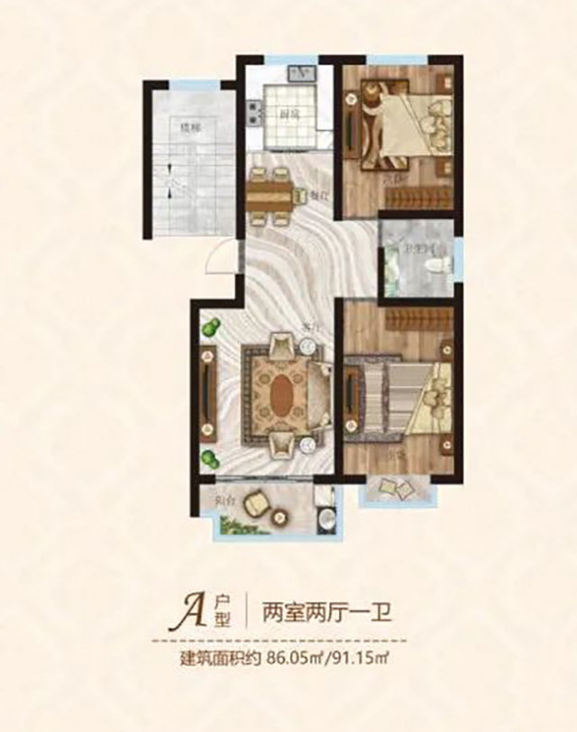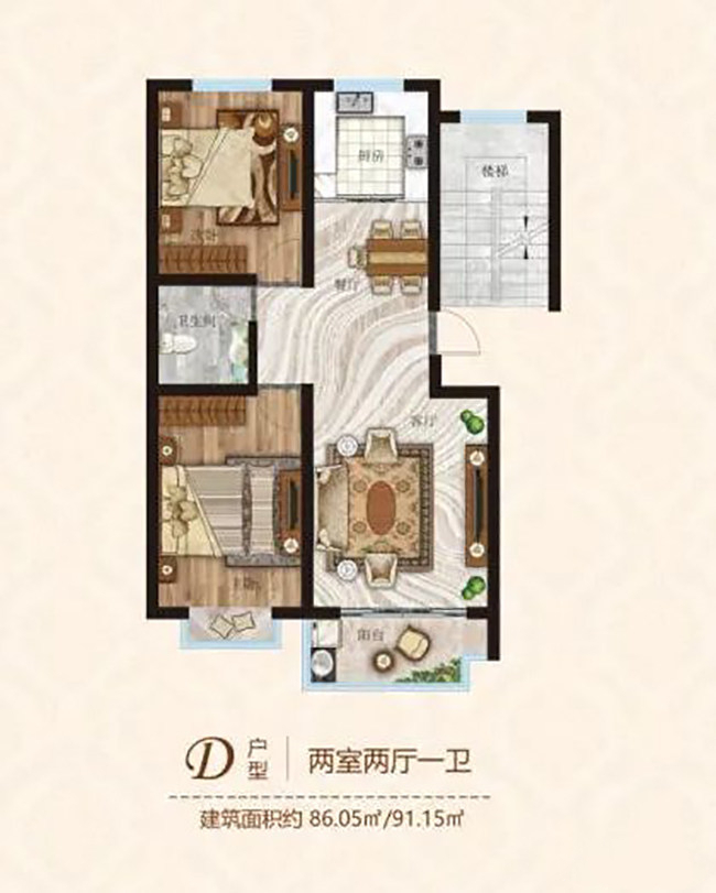 2室2厅1卫|约86.05㎡(建面)