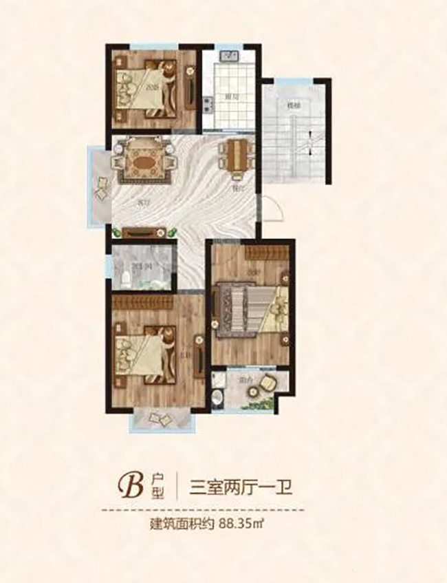 3室2厅1卫|约88.35㎡(建面)