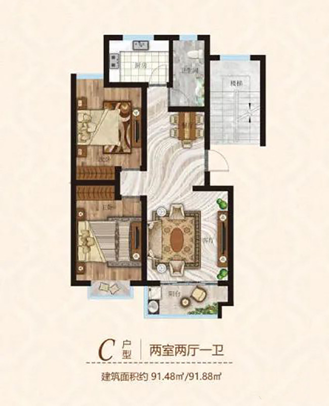 2室2厅1卫|约91.48㎡(建面)