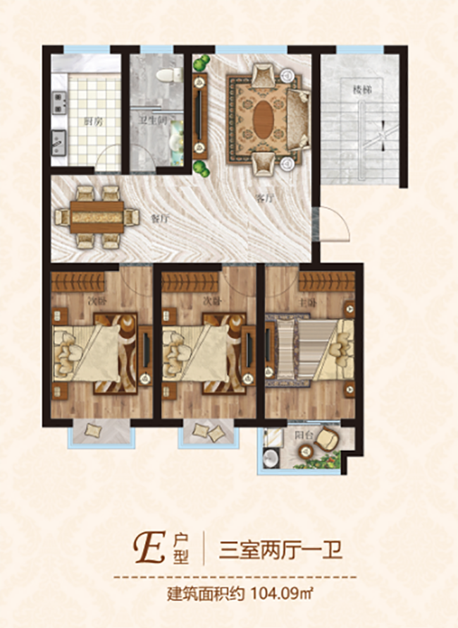3室2厅1卫|约104.09㎡(建面)