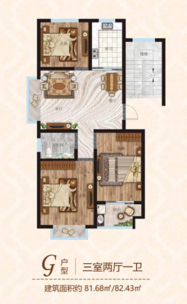 3室2厅1卫|约81.68㎡(建面)